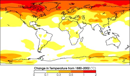 Mapa oteplení planety za uplynulých 122 let.